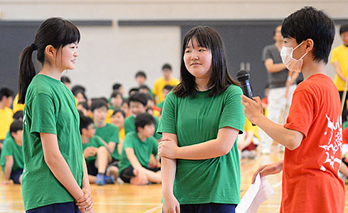 スポーツフェスティバルを開催しました。縦割りの3チームで、競技の得点を競い合い、優勝を目指しました。また、進行やナレーション、救護係、用具係など、それぞれの係チームで準備、計画してきたことを出し切る一日でした。