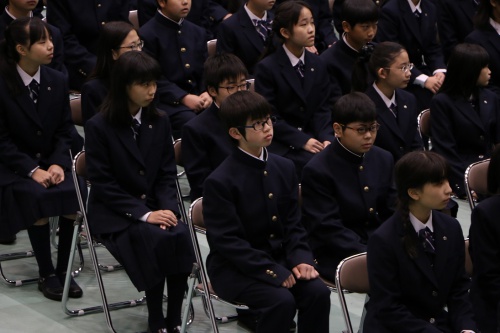 緊張した面持ちの新入生たちでしたが、「入学許可」の呼名に、元気よく応えてくれました。校長式辞では、「しなやかマインドセット」をもち、失敗やストレスを恐れずに、さまざまなことに挑戦し、能力を伸ばしていけるようにとお話がありました。