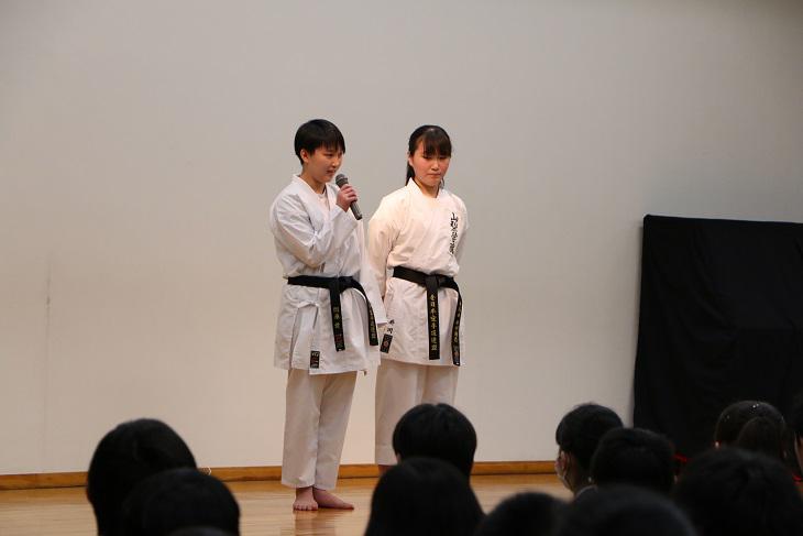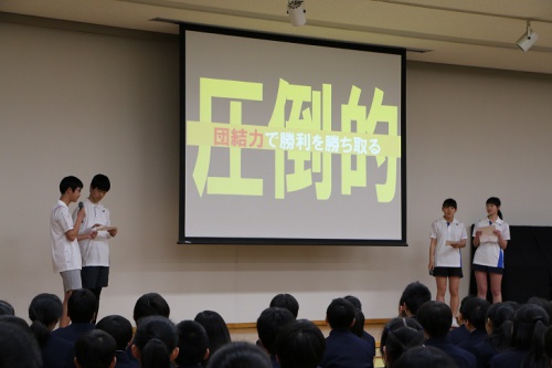 生徒会主催で、新入生歓迎会を開きました。生徒会からは学校や先生の紹介が、各部活動からは活動内容の紹介がありました。1年生代表からは、「学校説明会での部活体験がとても楽しかったので、部活動を楽しみにしていました。今日の説明を聞いて、どの部活動に入るか決めたいと思います」と感謝が述べられました。