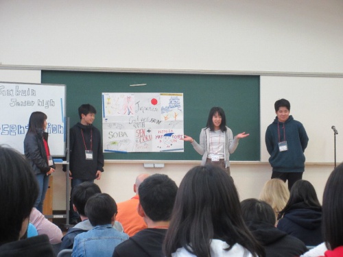1クラス7人~9人にネイティブ講師がつく、少人数制の英語研修合宿です。この3日間は、まさに「英語のシャワー」を浴びることによって、Listening力の向上や、Speaking力の習得に力を入れました。最終日はその成果を存分に発揮して、身振り・手振りも交えながらのプレゼンテーションを行いました。