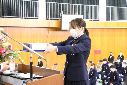 卒業生94名は、晴れやかな笑顔で中学校棟から巣立ちました。