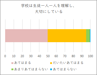 以下、生徒アンケートおよび全学年の保護者を対象としたアンケートの結果を抜粋してご紹介いたします。